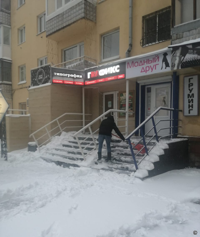 Организована работа более 180 предприятий потребительского рынка по очистке входных групп, прилегающих территорий от снега и посыпке противогололедными материалами прилегающих территорий, задействовано 122 дворника.