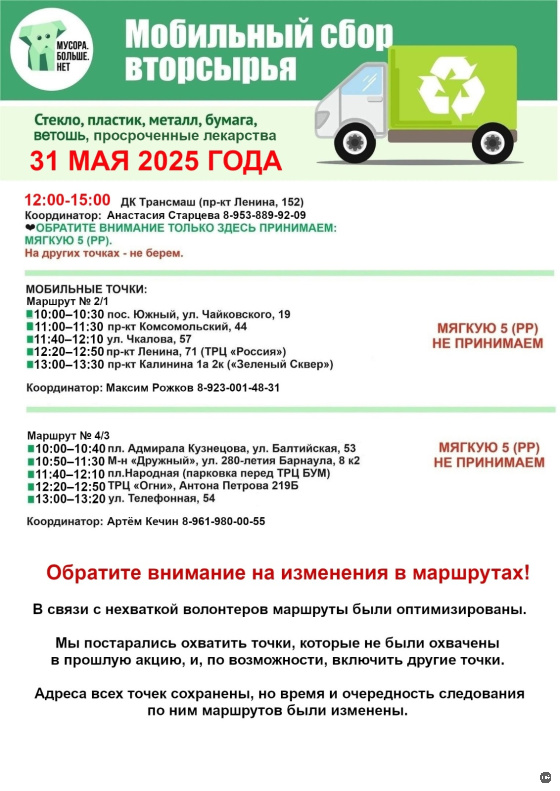 В субботу, 31 мая, в краевой столице пройдет традиционная экологическая акция по раздельному сбору отходов «Разделяя сохраняй!». Организаторами мероприятия выступает НКО «Мусора.Больше.Нет» при поддержке комитета по благоустройству города Барнаула.