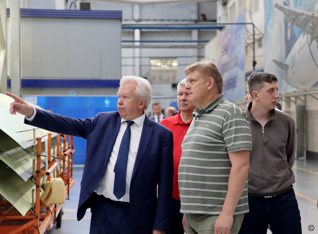 Полпред осмотрел цеха, где ведётся сборка авиалайнера, и провёл рабочую встречу с генеральным директором завода Александром Вепревым. Были обсуждены перспективы развития предприятия, включая кадровую политику. На заводе трудится около 12 тысяч сотрудников, средний возраст которых составляет 39,5 лет. Ежегодно обучение и переподготовку проходят порядка 5 тысяч работников. Предприятие вносит значительный вклад в экономику региона, являясь одним из крупнейших налогоплательщиков. Особое внимание уделяется экологической безопасности и внедрению передовых технологий. Полпред также посетил инновационный логистический центр, оптимизирующий процесс сборки МС-21.