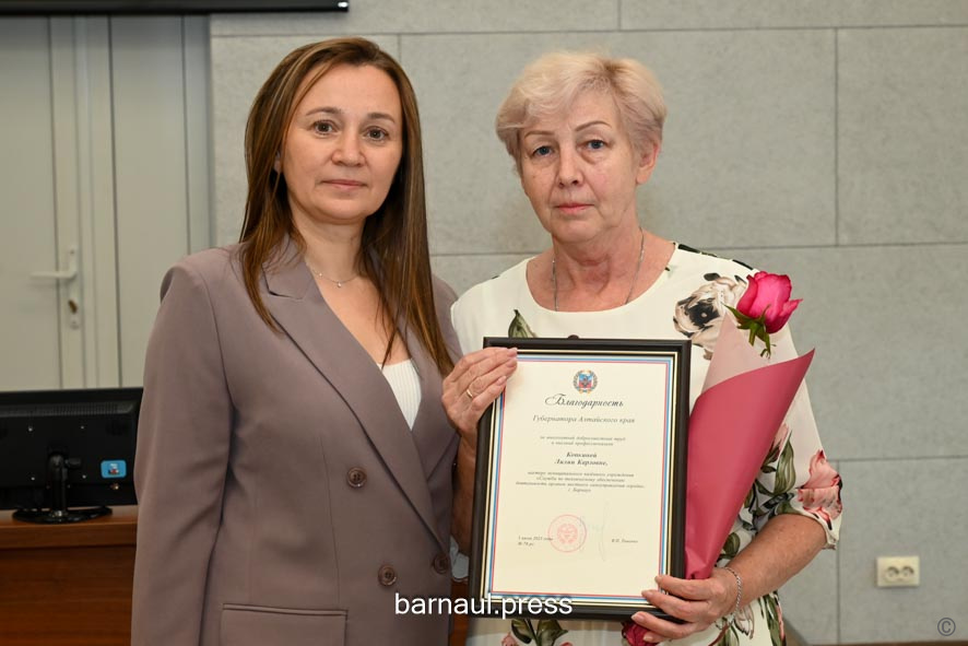 В администрации Барнаула состоялось торжественное мероприятие по вручению наград и поощрений. На церемонию пригласили жителей Барнаула, тех, кто добился успехов в профессии, в общественной деятельности.