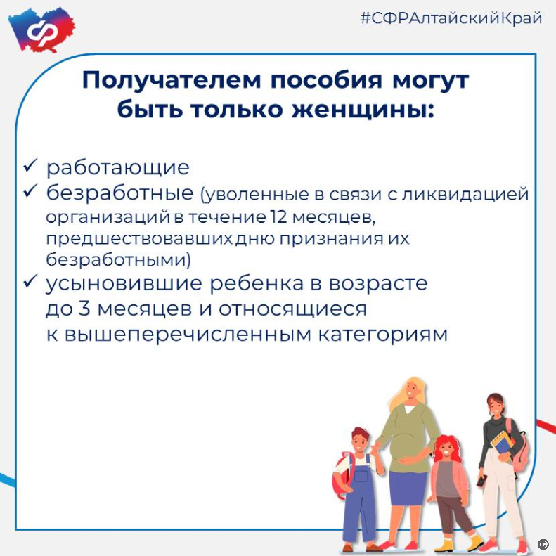 В ОСФР по Алтайскому краю пособие по беременности и родам получают жительницы региона, имеющие определенный статус: