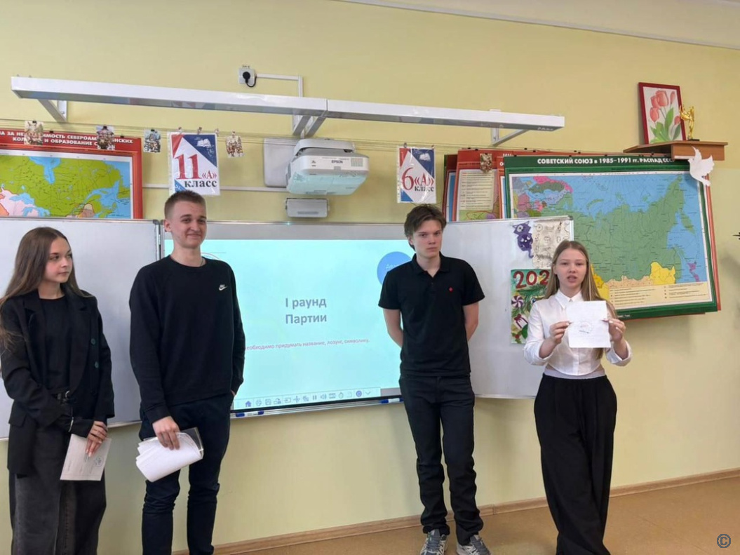 В 1 раунде ребята распределились по командам. Им необходимо было представить, что их команда является политической партией и придумать название, лозунг, основные направления деятельности. Во 2 раунде участникам были предложены несколько тем для дебатов. В 3 раунде необходимо было порассуждать на тему «Если бы я стал президентом».