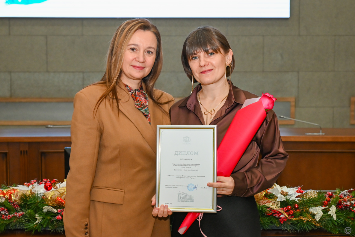По традиции накануне Нового года подводятся итоги городского конкурса «Лучшее территориальное самоуправление», цель которого содействие развитию института ТОС, повышение активности граждан в решении вопросов местного значения. Оксана Финк вручила дипломы победителям и участникам конкурса. Так, пятерку победителей конкурса возглавила председатель Совета ТОС поселков Черницк и Мохнатушка Центрального района Оксана Петрякова. Почетные второе, третье, четвертое и пятое места заняли Евгения Шаталова (ТОС Красноармейского микрорайона Железнодорожного района), Анна Кныш (ТОС Гущинского микрорайона Ленинского района), Виталий Лаптев (ТОС «Научный» Ленинского района, Ольга Дроздова (ТОС микрорайона «Авиатор» Индустриального района). Дипломы участников конкурса вручены руководителям 10 органов ТОС.