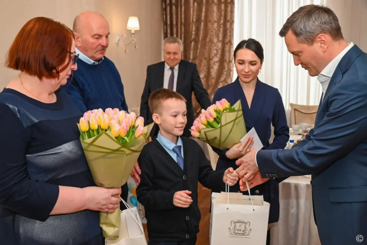 Инна Иванова рассказала главе об успехах сына Артема, в том числе спортивных. Мальчик отметил, что ему очень нравится заниматься спортом.