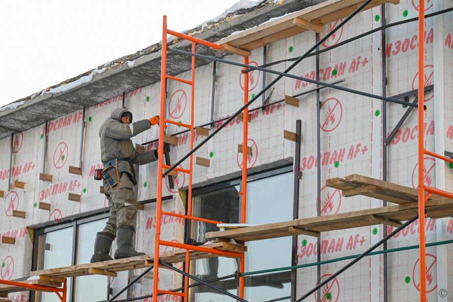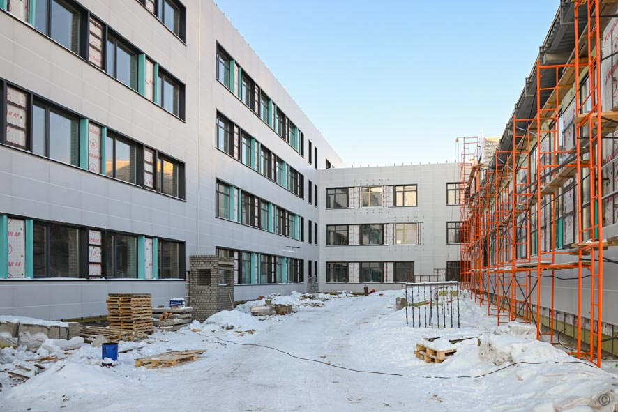 «Строительство школы движется динамично. На текущий момент строительная готовность школы в квартале 2033 составляет 42 %. На объекте уже выполнены: нулевой цикл, бетонирование чаши бассейна, устройство кровли на блоках А, Б и В, монтаж наружной сети теплоснабжения. Сейчас строители ведут комплекс работ — от кладки стен и монтажа инженерных систем до отделки и устройства фасадов. Все процессы синхронизированы и идут в соответствии с графиком, без каких‑либо отставаний».