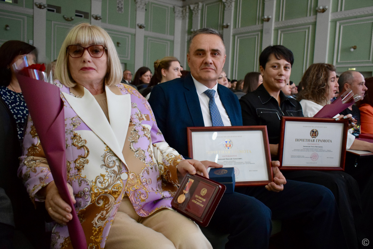 С приветственным словом к собравшимся обратился начальник департамента Администрации Губернатора и Правительства Алтайского края по вопросам государственной службы и кадров Сергей Долгуй, он поблагодарил барнаульцев за вклад в развитие города и пожелал всем новых достижений и побед. Медаль Алтайского края «За заслуги перед обществом» вручена председателю ТОС микрорайона «Мирный» Татьяне Поповой, Почетными грамотами Правительства Алтайского края награждены водитель троллейбуса МУП «Горэлектротранс» Николай Даренский, заведующий отделением молочного пункта АО «Учебно-опытное хозяйство «Пригородное» Олеся Двоеносова, директор ООО управляющая компания «Жемчужина» Ирина Сальникова, слесарь-сантехник ООО «Эталон» Владимир Чернобаев, Благодарностью Губернатора Алтайского края поощрены методист муниципального бюджетного учреждения дополнительного образования «Детско-юношеский центр» Индустриального района Жанна Заря и учитель иностранных языков муниципального автономного образовательного учреждения «Средняя общеобразовательная школа №132» им. Н.М. Малахова Ольга Панченко.