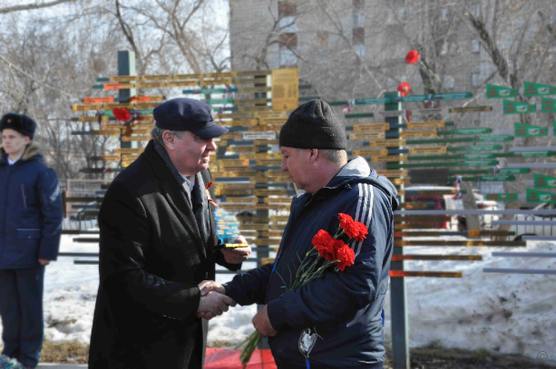 Именные символы «Дерева Памяти» родственникам героев вручил руководитель проекта, депутат Барнаульской городской Думы, командир отряда Ленинского района Народной дружины «Барнаульская» Азер Алиев.