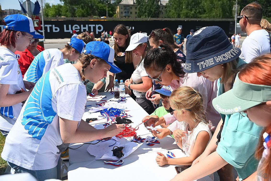Аллея, ведущая к театру драмы, была занята разными активностями. Здесь можно было поиграть в быстрые шахматы и шашки, познакомиться с изделиями народных умельцев и мастеров. Волонтеры Победы раздавали горожанам ленточки триколора и приглашали поучаствовать в мастер-классах - мальчишки и девчонки с удовольствием мастерили себе и родителям симпатичные браслетики и брошки.