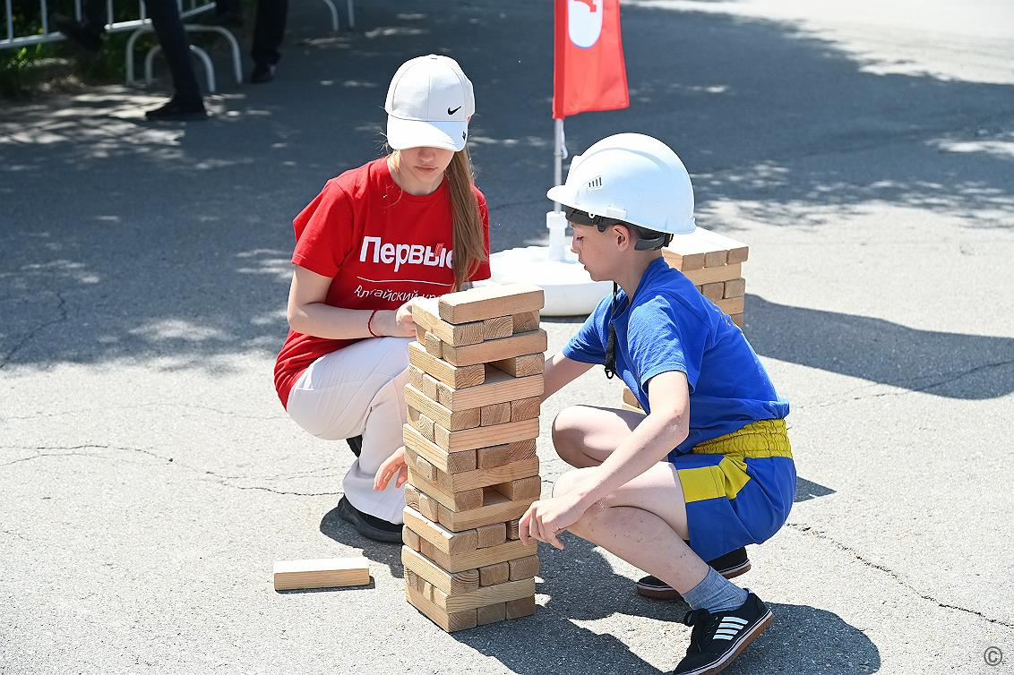 На противоположной стороне площади работали волонтеры Движения Первых, которые организовали несколько мастер-классов и предлагали детям познакомиться с развивающими играми. Здесь было оформлено несколько фотозон, которые также пользовались спросом у горожан.