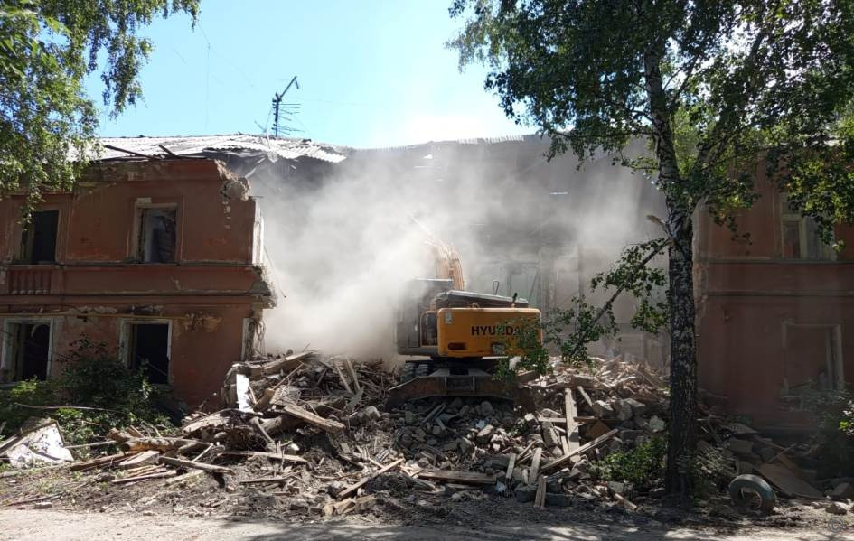 Двухэтажный многоквартирный дом по ул.Петра Сухова, 12 1949 года постройки признали аварийным и подлежащим сносу 11 мая 2023 года. В связи с ухудшением технического состояния здания, работы по расселению дома начались вне очереди в конце 2024 года, полностью дом расселили в июне 2025 года. Сегодня, 10 июля, подрядная организация приступила к сносу дома и планирует завершить работы в течение июля.