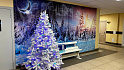 Особенно творчески к оформлению пространств подошли в детском саду №215. Своими руками ребята и воспитатели в музыкальном зале сделали композицию с большими часами, санями и оленями. А лестничные марши украсили мишурой, гирляндами и елочными ветками.