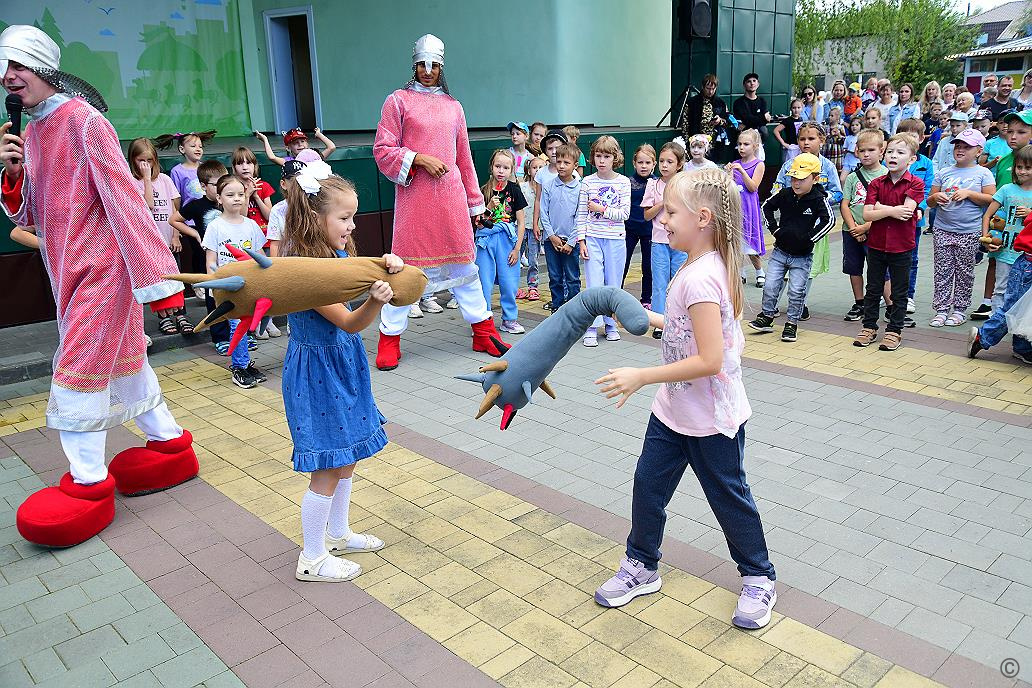 Перед вручением канцелярии для будущих школьников прошла праздничная развлекательная программа с аниматорами и выступлениями творческих коллективов. Повсюду слышался задорный детский смех, ребята с удовольствием участвовали в различных активностях.
