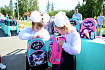 Красочную канцелярию также получили очаровательные двойняшки в больших белых бантах Вероника и Виктория. Они пришли на праздник с бабушкой — Валентиной Брюховой.
