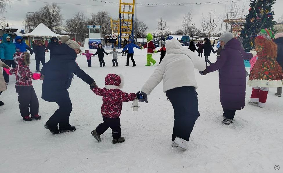 Гости приняли участие в зимних марафонах и конкурсах, покатались наперегонки на санях, примерили рождественские шапки и поиграли в праздничные игры. Также гости парка приняли участие в хороводе.