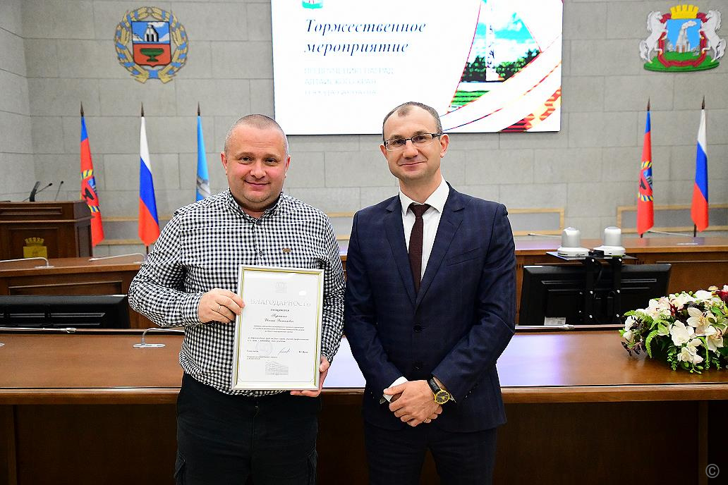 В администрации города Барнаула состоялось торжественное мероприятие, где работников дорожного хозяйства, автомобильного и городского пассажирского транспорта отметили заслуженными наградами.