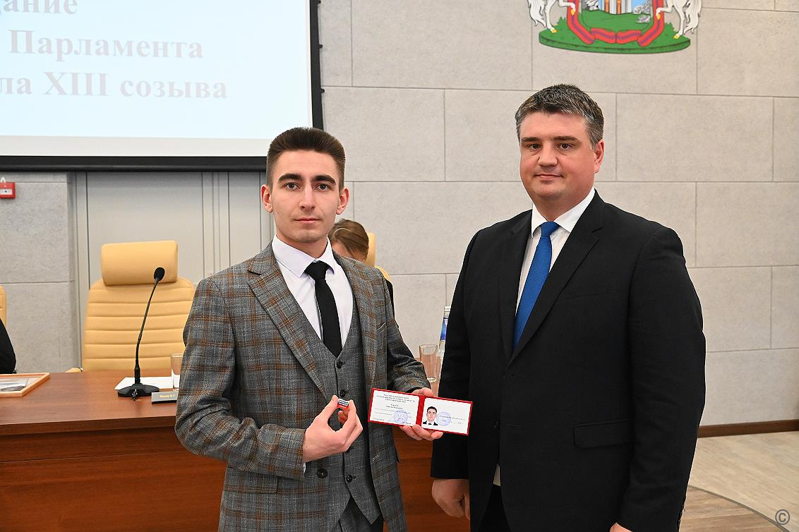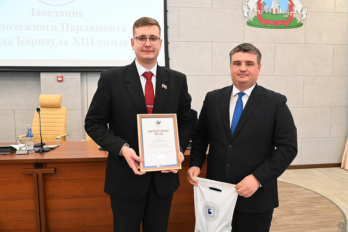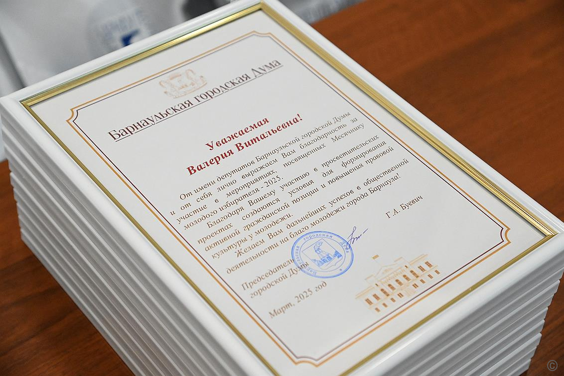 В начале сессии прошло традиционное награждение депутатов молодежного Парламента города, которые активно участвовали в реализации программы Месячника молодого избирателя – 2025.