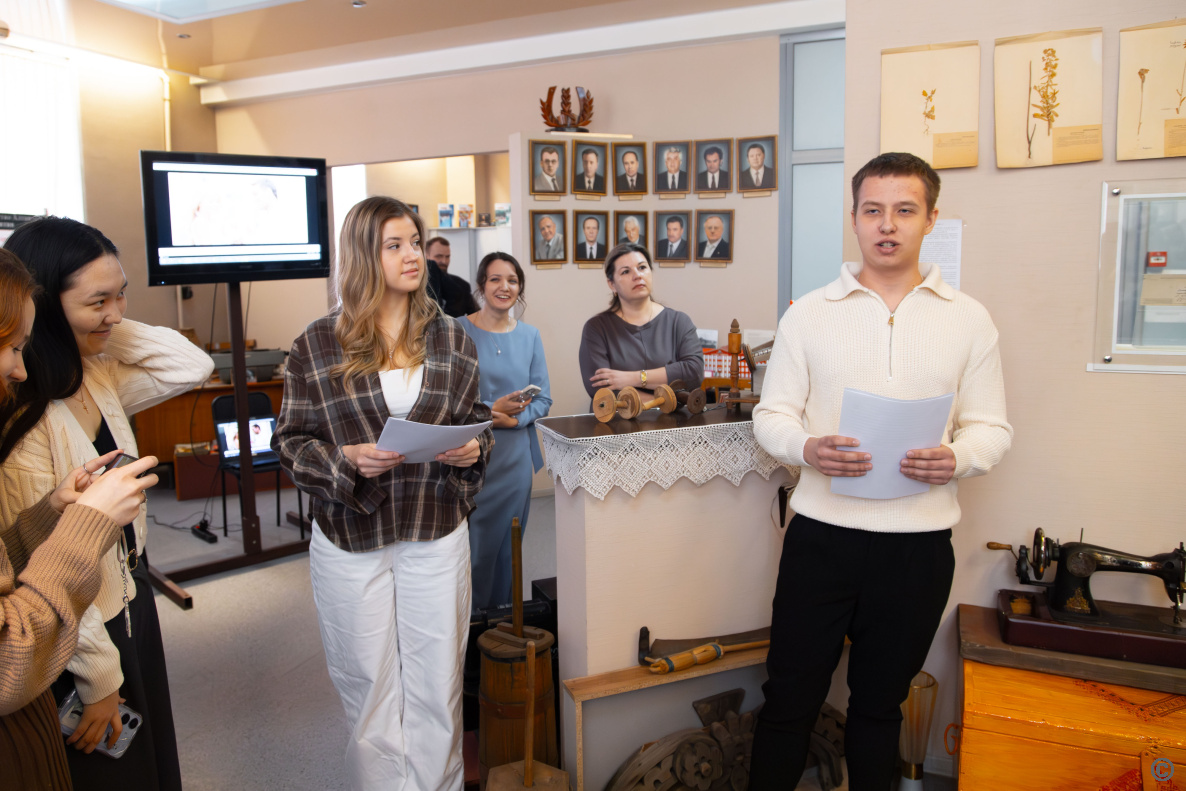 Экскурсию для первых посетителей, которыми стали студенты 2 курса Экономического факультета и первокурсники Биолого-технологического факультета, провели студенты Алтайского государственного института культуры Александра Лукьянова и Михаил Недозрелов. Ребята вместе с преподавателем кафедры музеологии и туризма АГИК Анастасией Астаховой участвуют в проекте «Научное проектирование эксподизайна, систематизация и трансляция исторического наследия АГАУ».