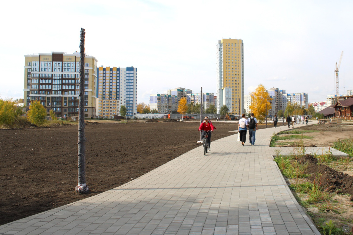 На территории зеленой зоны в границах улиц Ленинградской, Энтузиастов, Антона Петрова (парк имени Ленина) рабочие подрядной организации завершают работы по формированию пешеходно-тропиночной сети. Здесь уже обустроили дорожки с плиточным и асфальтовым покрытием, уложили специальное резиновое покрытие на территории будущих спортивных и игровых площадок. Подрядчиком продолжаются работы по устройству площадок для отдыха с покрытием из террасной доски. Накануне начались работы по посеву газона.