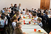 Сегодня, согласно меню, для ребят приготовлено блюдо из припущенного риса и рыбы с овощами, брусничный морс. Завтрак наступает, как правило, после второго урока, первыми в столовую проходят первоклассники. После мытья рук они быстро рассаживаются и принимаются за еду. Одни с аппетитом уплетают рыбное суфле, другие скромно поглощают рис, третьи, съев все, отодвигают от себя нетронутый стакан с напитком.