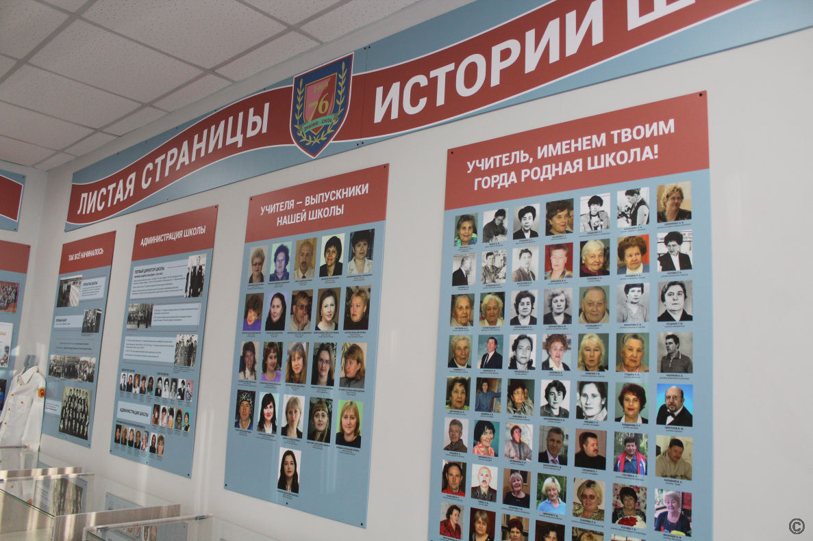 Интересно, что история музея школы № 76 началась 20 лет назад с инициативы учащихся 11 класса. Теперь пространство получило совершенно новый облик вновь благодаря неравнодушным ребятам – они предложили выдвинуть проект реконструкции музея на участие в региональном конкурсе детских инициатив «Я считаю» и в 2025 году стали его победителями. Благодаря поддержке неравнодушных родителей и благотворителей кабинет полностью отремонтировали, заменили мебель и витрины, обновили стенды, создали новые экспозиции, одна из которых посвящена героям специальной военной операции.