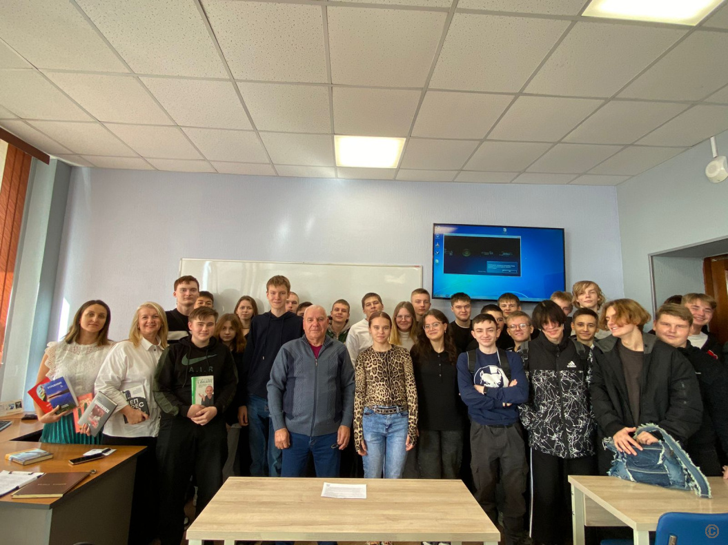 Приглашенный писатель, прозаик, Бычков Виктор Николаевич поделился со студентами, как дорожить семейными традициями и ценностями, а также подарил сборник произведений авторов Алтайского края.