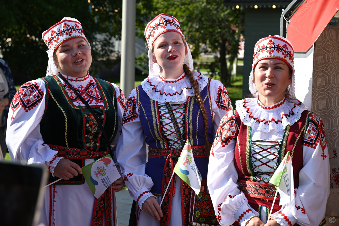 Участники встречают гостей в национальных костюмах, проводят мастер-классы по изготовлению национальных оберегов, ткачеству и плетению, традиционной народной вышивке и другие. Здесь же проходит концерт с участием национально-культурных организаций и творческих коллективов.