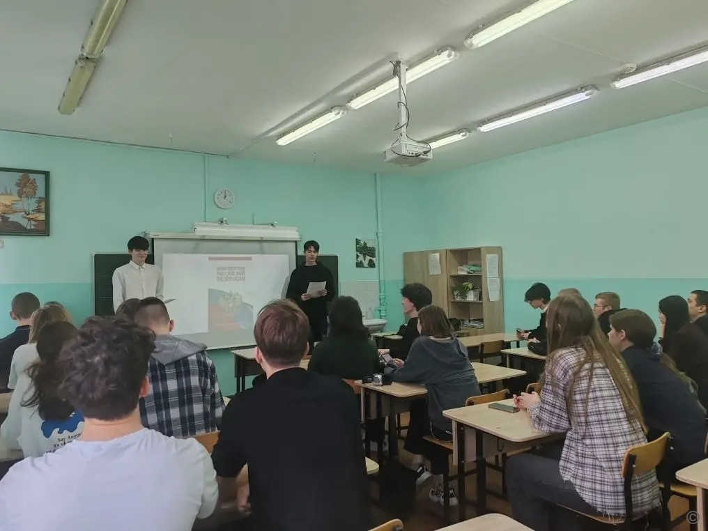 В школе № 128 по инициативе советника директора по воспитанию Елены Агаповой с основными принципами и положениями Конституции под руководством своих классных руководителей познакомились ученики одиннадцатых классов. Для восьмиклассников провели классный час на тему «Конституция РФ». В рамках мероприятия ребята узнали о ключевых положениях документа и их значении для страны. Классный час стал важным шагом в формировании у учащихся знаний о Основного закона страны и развитии интереса к правовой тематике.