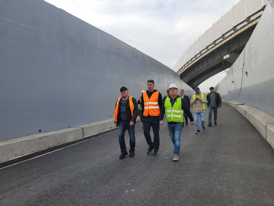 Одновременно на объекте продолжают работы по устройству водоотводных сооружений, дренажной системы, шумозащитных экранов, тротуаров и ограждений. В рамках благоустройства территории продолжают посев газонов.