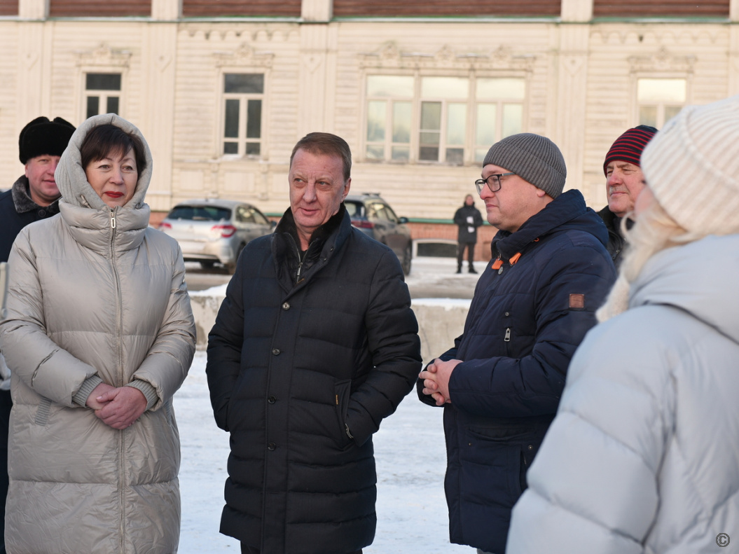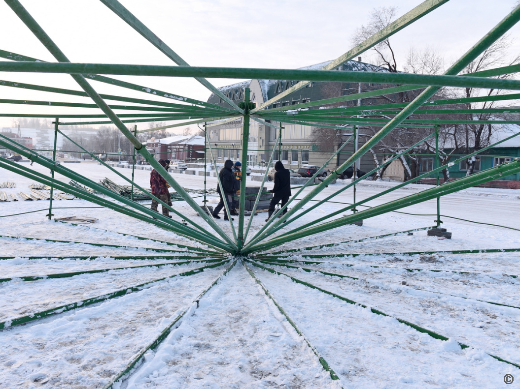 Глава города посетил площадь Свободы, где уже приступили к возведению новогоднего городка.