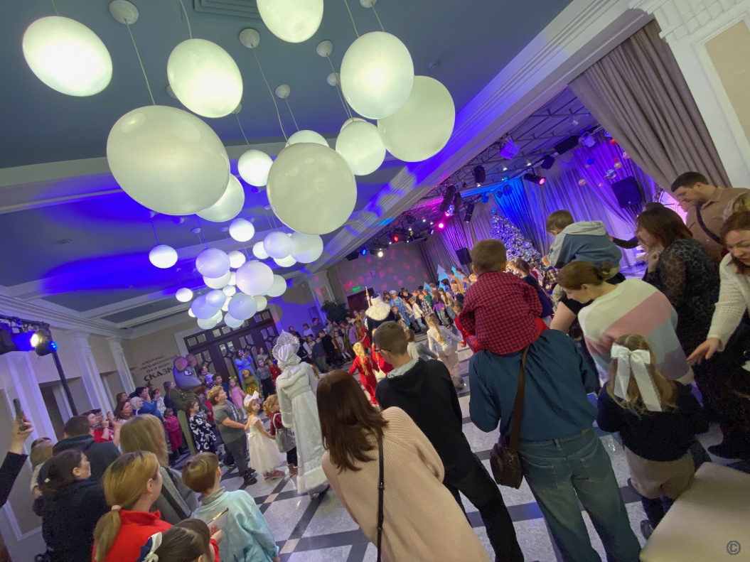 Перед представлением в холле герои театра Витя, Маша и Мышиный Король, разыграли новогоднюю интермедию, а затем Снегурочка и Дед Мороз вместе с ребятами зажгли гирлянды на елке. И сказка началась!