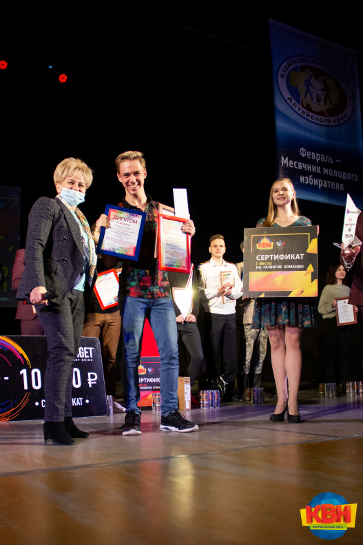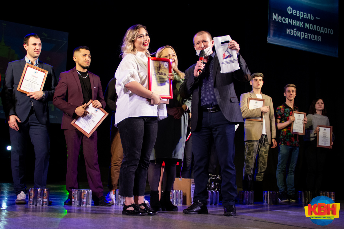 19 февраля состоялся XIII открытый фестиваль молодежных команд «Кубок Молодого избирателя – 2021». Юмористическое состязание было приурочено к Месячнику молодого избирателя в Алтайском крае и прошло на площадке Дворца культуры города Барнаула. Обязательным условием в этом году стало соблюдение требований к организации санитарно-противоэпидемического обеспечения в период проведения массовых мероприятий.