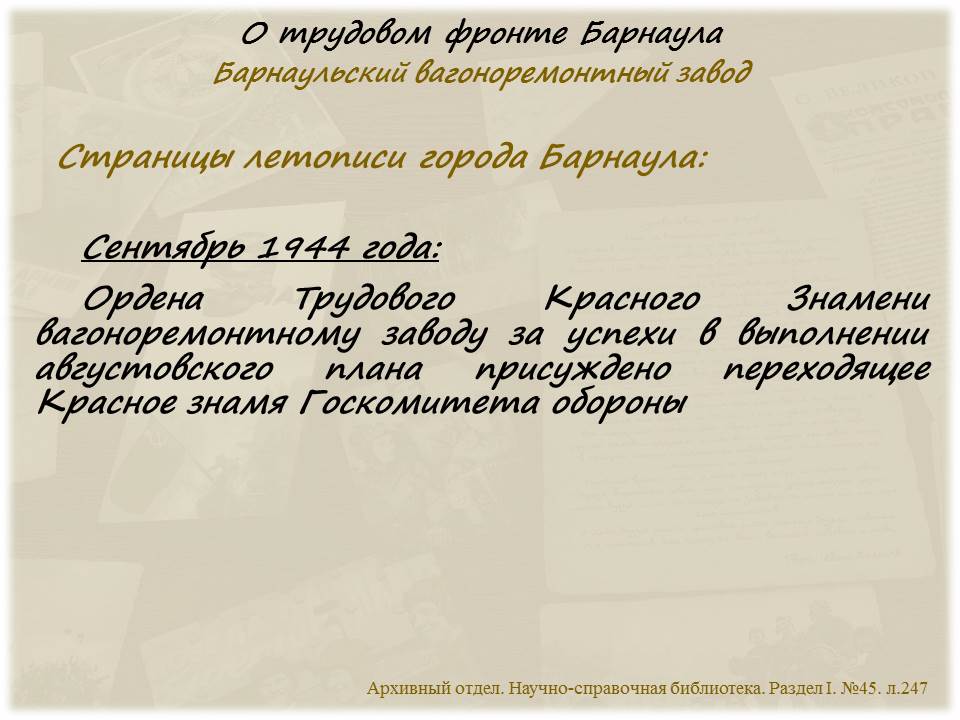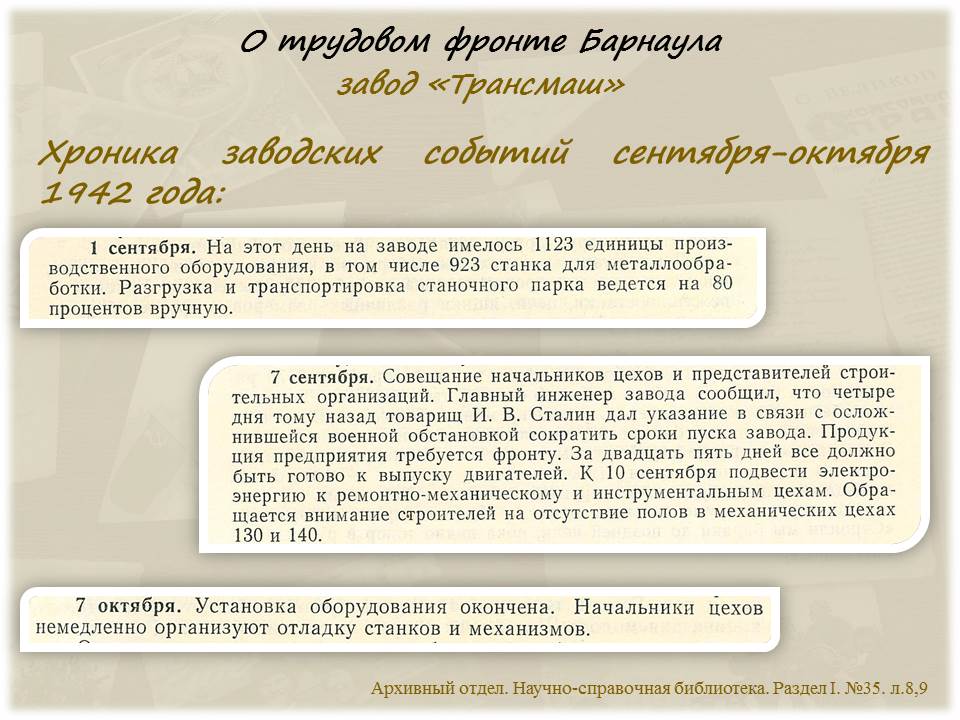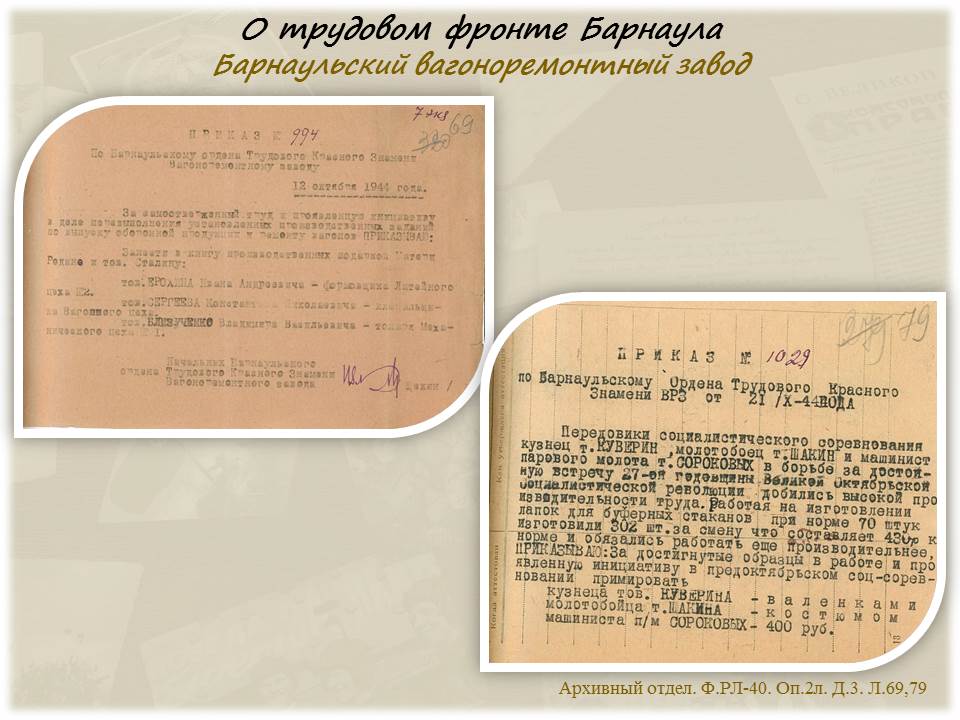 Городской архив ко Дню Победы подготовил виртуальную выставку «Барнаулу – городу трудовой доблести посвящается»