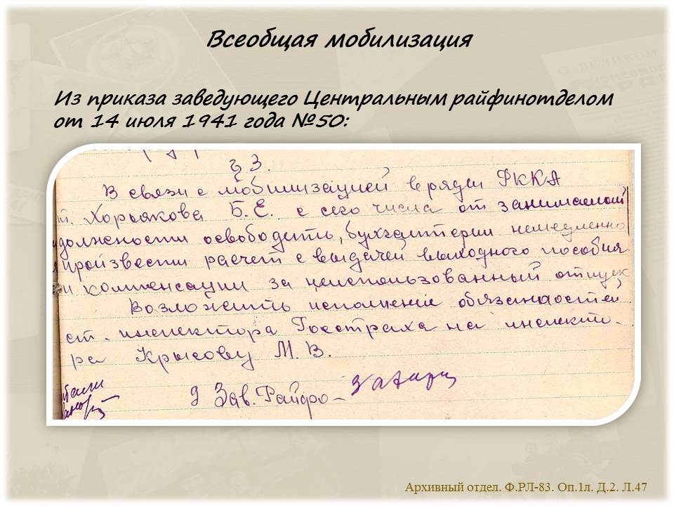 Представленные на выставке документы тех лет отражают тяжелый труд жителей города по изготовлению и выпуску необходимой для фронта продукции, запуску эвакуированных в город предприятий с западной части страны, социально-бытовое обеспечение рабочих заводов и учащихся школ.