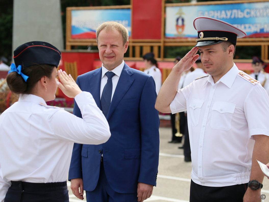 Сегодня, 28 июля, состоялся торжественный выпуск слушателей факультета подготовки сотрудников полиции и следователей, факультета профессиональной подготовки Барнаульского юридического института МВД России. Выпускники этого года будут служить в регионах Сибирского федерального округа. В торжественном мероприятии приняли участие председатель АКЗС Александр Романенко, глава города Барнаула Вячеслав Франк, руководители федеральных органов власти, силовых структур и др.