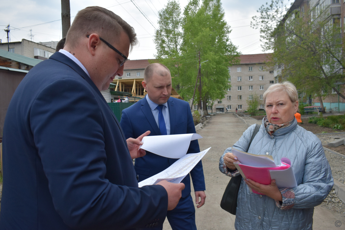Ход благоустройства двора в рамках нацпроекта «Жилье и городская среда» по ул. 50 лет СССР, 15 проинспектировали глава администрации района и депутаты городской Думы. 16 мая глава администрации Денис Летягин, депутаты Барнаульской городской Думы Сергей Струченко и Дмитрий Мавлютов встретились с представителями подрядной организации для обсуждения хода благоустройства.
