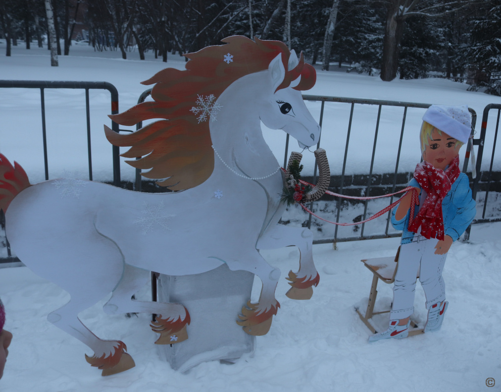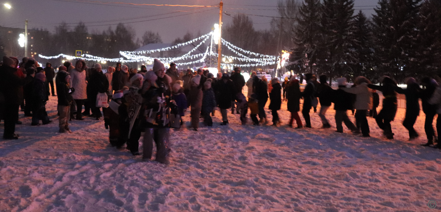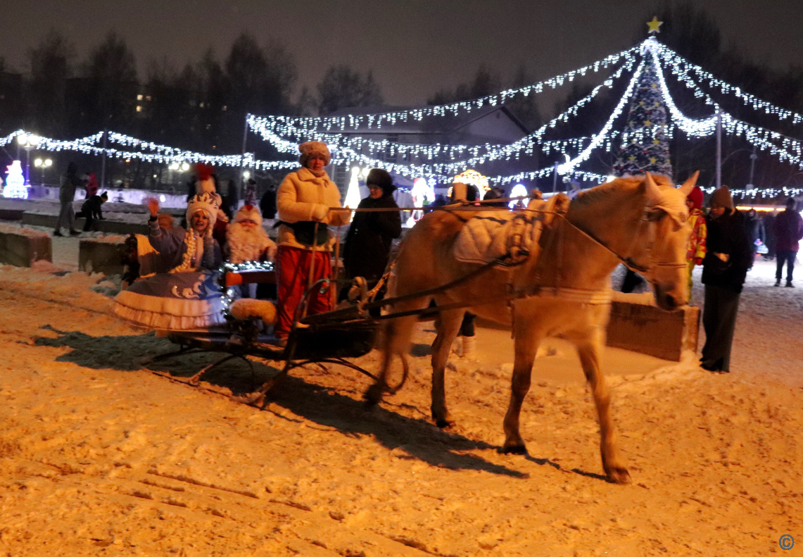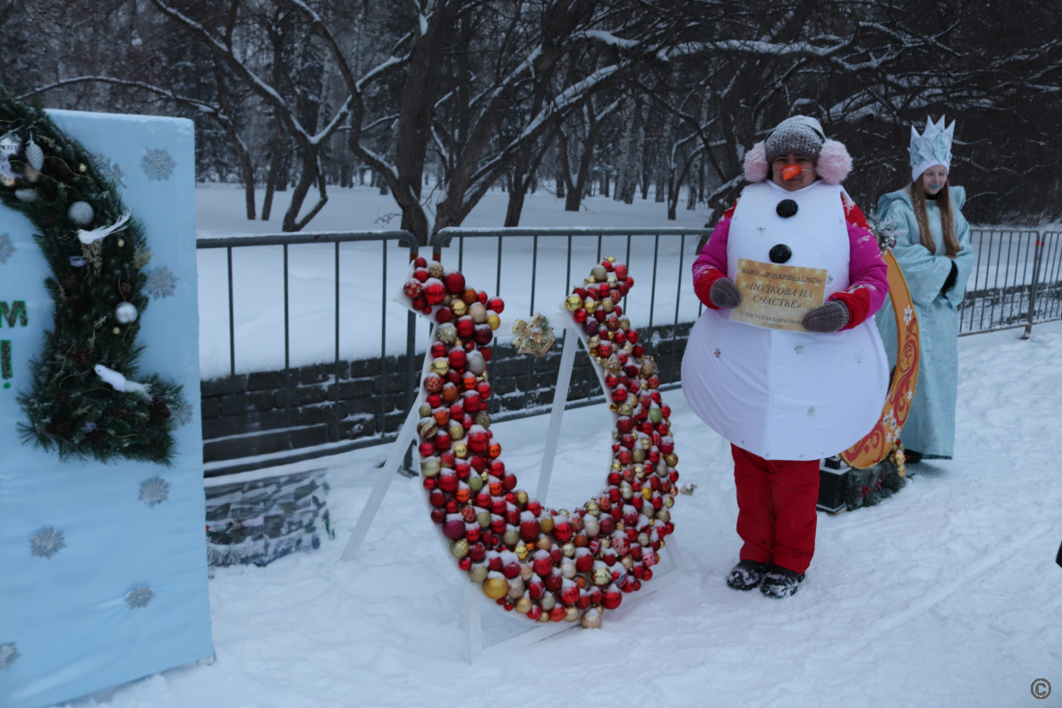 Жителей ждала насыщенная развлекательная программа: встреча с Дедом Морозом и Снегурочкой, весёлые игры, зажигательные танцы, была организована выставка-конкурс тематических композиций «Подкова на счастье».