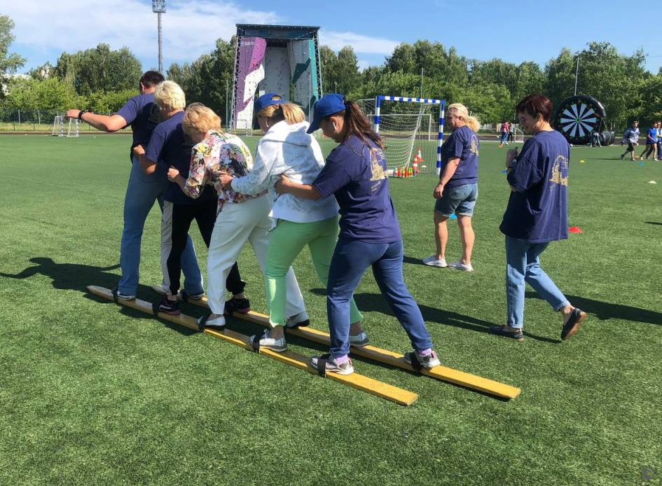 - гигахоккей (участники надувными клюшками вели фитбол по заранее подготовленной полосе с различными препятствиями);