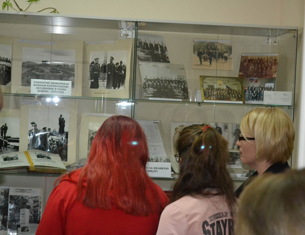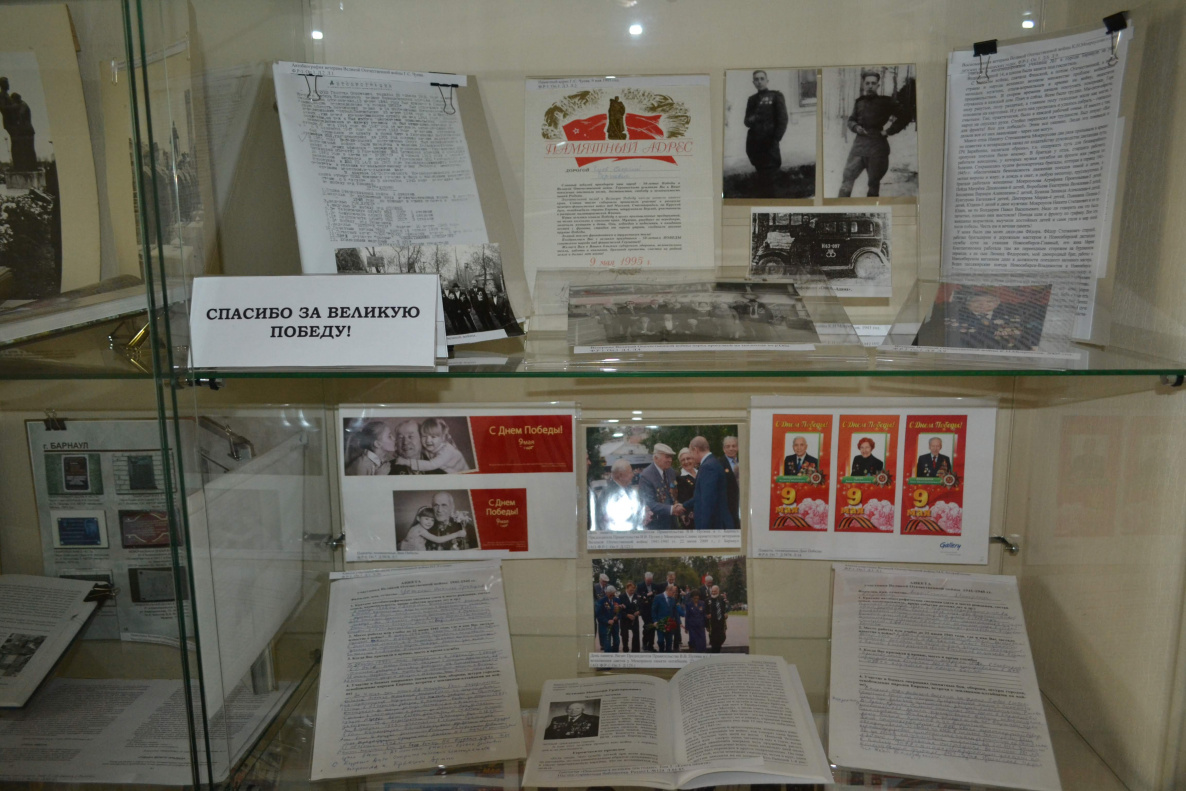 На выставке представлены фотографии, документы, книги, газеты и буклеты о жизни города, судьбах барнаульцев в годы Великой Отечественной войны. В анкетах и автобиографиях фронтовиков отражены воспоминания о годах войны, боевом пути очевидцев тех событий.