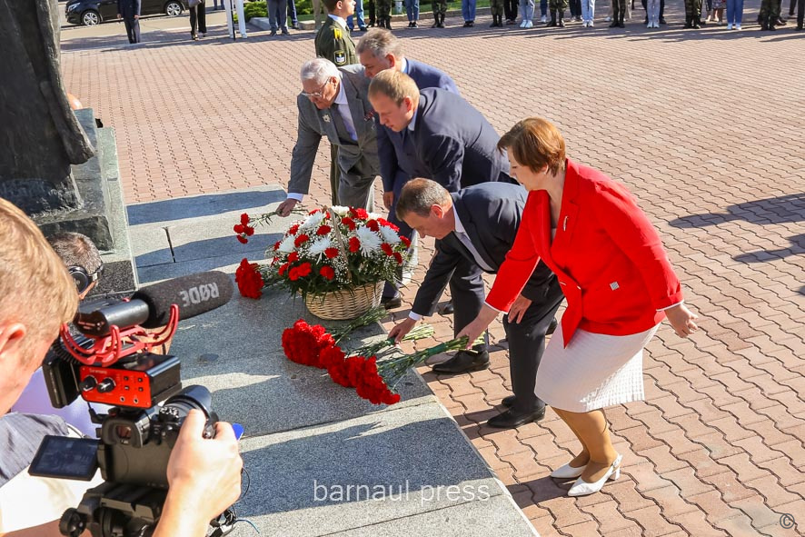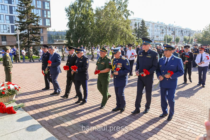 Память защитников Отечества почтили губернатор Алтайского края Виктор Томенко, глава Барнаула Вячеслав Франк, председатель АКЗС Александр Романенко, Главный федеральный инспектор по Алтайскому краю Юрий Земский, председатель городской Думы Галина Буевич, ветераны, депутаты БГД и АКЗС, руководители силовых ведомств, представители делегация Славяносербского района ЛНР, органов власти, общественных и военно-патриотических объединений, неравнодушные барнаульцы.