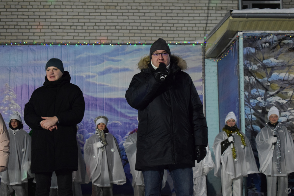 Атмосферу веселья и предстоящего праздника создавали для гостей Дед Мороз и Снегурочка. Они организовали веселые конкурсы, песни, танцы и новогодние забавы которые помогали согреться и поднимали настроение. По сложившейся традиции во время праздника для всех жителей было организованно угощение горячим чаем и сушками.